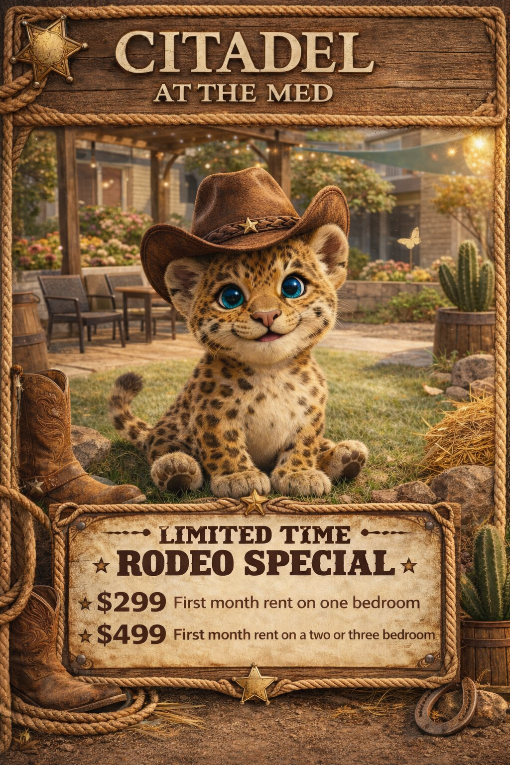 🐎 $299 First Month – 1 Bedroom 🌵 $499 First Month – 2 & 3 Bedrooms Experience elevated living at Citadel at the Med, where Western charm meets refined comfort ✨